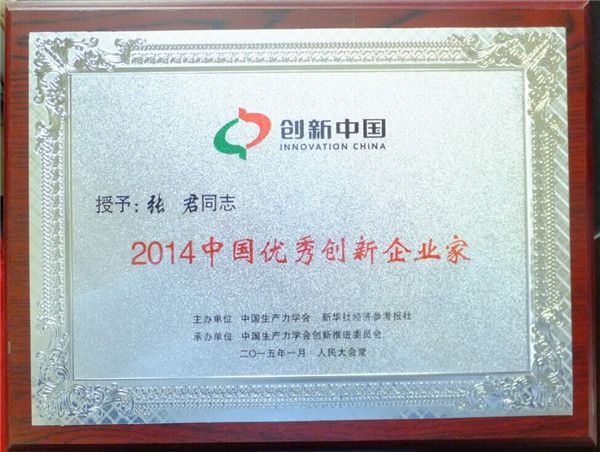 2015年1月18日,以“中國(guó)式創(chuàng)新—捕捉新常態(tài)下的新機(jī)遇”為主題的”創(chuàng)新中國(guó)—中國(guó)企業(yè)創(chuàng)新論壇2014年年會(huì)”在北京人民大會(huì)堂隆重舉行,陜西盟創(chuàng)納米新型材料股份有限公司總經(jīng)理張君,以其在企業(yè)經(jīng)營(yíng)管理創(chuàng)新中的卓越表現(xiàn)被授予“2014中國(guó)優(yōu)秀創(chuàng)新企業(yè)家”榮譽(yù)稱號(hào)。