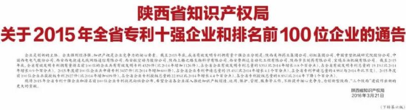 陜西盟創獲陜西省知識產權全省發明專利百強企業