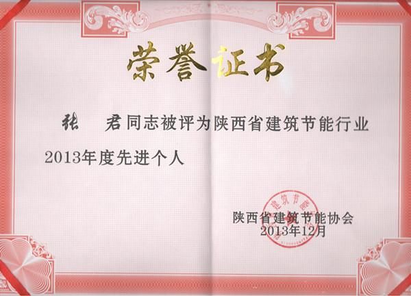 公司總經理張君被評為陜西省建筑節能行業先進個人