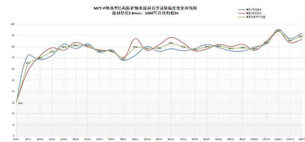 盟創納米開發的絕熱型結構防護納米涂材,具有表層薄、黏結度高、防火性強,隔熱性優、綠色環保、強度高、耐酸堿、無腐蝕等特點。現場真型試驗表明,在沒有涂刷涂材的鋼結構正面使用丁烷噴槍對其灼燒,僅用不到兩分鐘時間,鋼結構背面溫度已經超過了200℃。而在涂刷有結構型防護納米涂材的鋼結構正面使用丁烷噴槍對其連續灼燒120分鐘,鋼結構背面溫度僅100℃左右,保護了鋼結構不發生性變,也將避免可能發生的火災安全隱患,從而起到對鋼結構的安全防火保護作用,讓火災防護變得更加高效持久,確保電力系統安全穩定運行,保護人類生命財產安全。